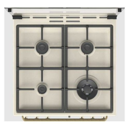 тип: газовая, тип духовки: газовая, тип варочной панели: газовая, материал рабочей поверхности: эмалированная сталь, ширина: 60 см, глубина: 60 см, электроподжиг: варочная поверхность + духовой шкаф, газ-контроль: духовки, гриль, особенности конструкции: подсветка духовки, дополнительные функции: таймер, очистка духовки: традиционная