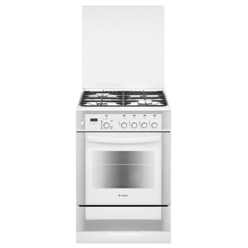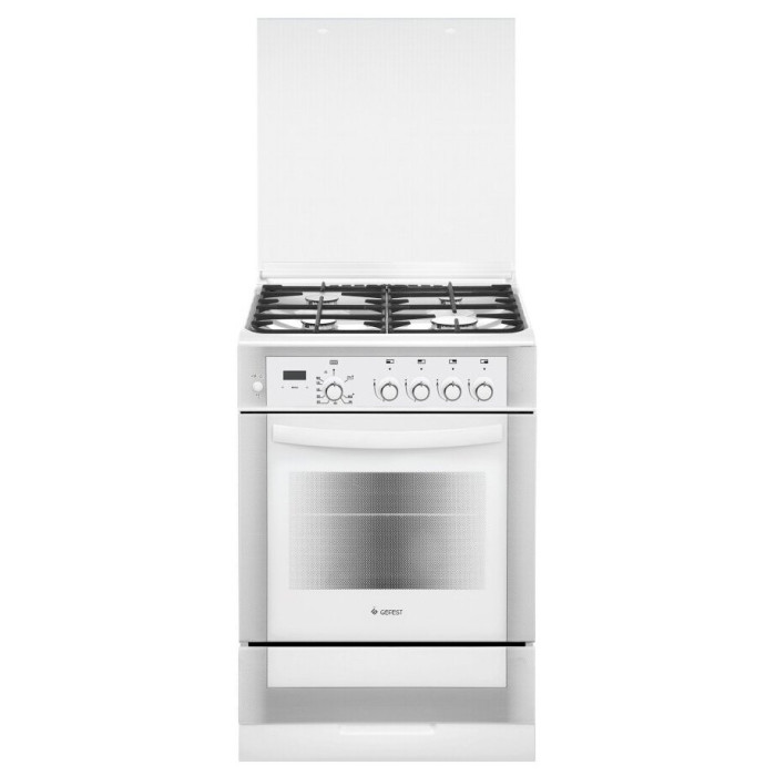 тип: газовая, тип духовки: газовая, тип варочной панели: газовая, материал рабочей поверхности: эмалированная сталь, ширина: 60 см, глубина: 60 см, количество конфорок: 4, газ-контроль: духовки, конфорок, гриль, особенности конструкции: вертел, подсветка духовки, чугунные решетки, тип таймера: звуковой, очистка духовки: традиционная