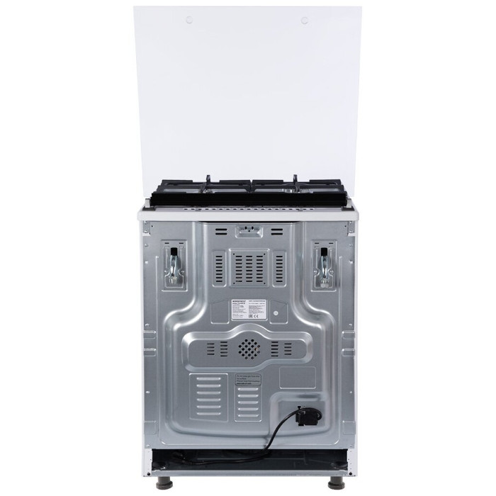 тип: комбинированная, тип духовки: электрическая, тип варочной панели: газовая, материал рабочей поверхности: эмалированная сталь, ширина: 60 см, глубина: 60 см, количество конфорок: 4, электроподжиг: варочная поверхность, газ-контроль: конфорок, конвекция в духовке, гриль, дополнительные функции: термостат