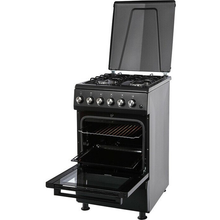 тип: газовая, тип духовки: газовая, тип варочной панели: газовая, материал рабочей поверхности: эмалированная сталь, ширина: 50 см, глубина: 60 см, количество конфорок: 4, электроподжиг: варочная поверхность + духовой шкаф, газ-контроль: духовки, конфорок, особенности конструкции: подсветка духовки, очистка духовки: традиционная