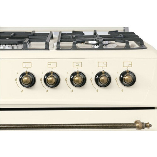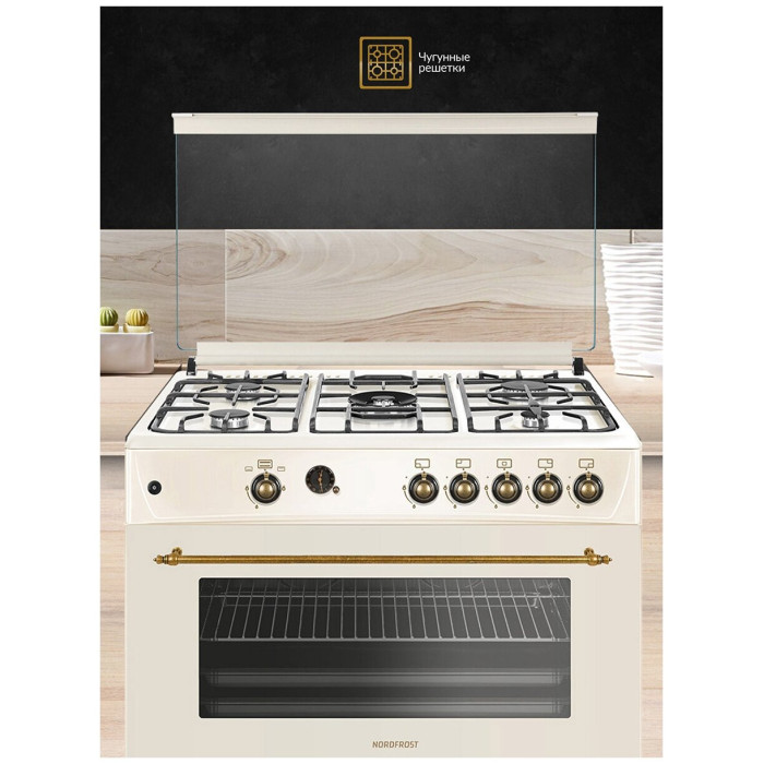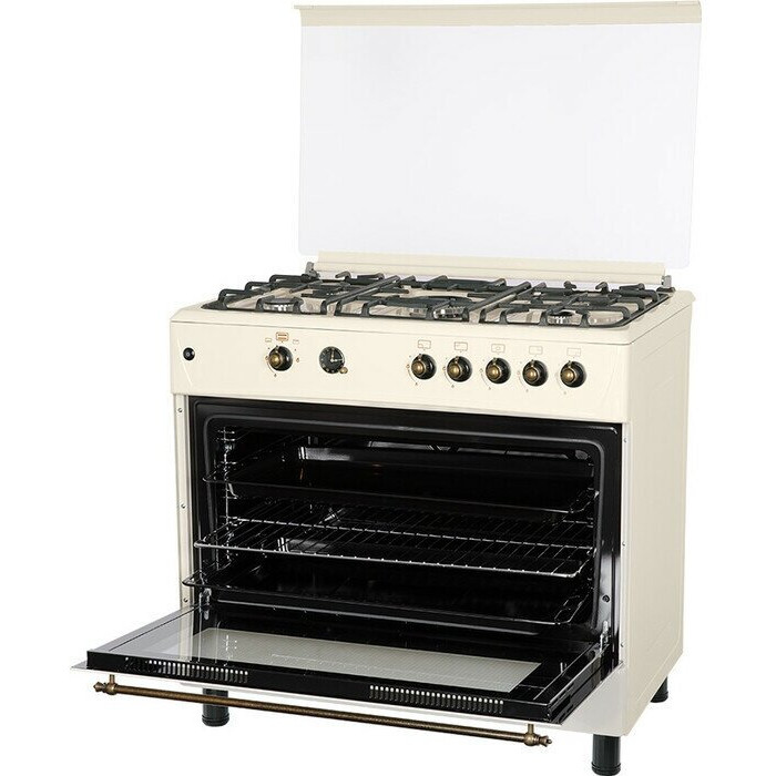 тип: газовая, тип духовки: газовая, тип варочной панели: газовая, материал рабочей поверхности: эмалированная сталь, ширина: 90 см, глубина: 60 см, количество конфорок: 5, электроподжиг: варочная поверхность, газ-контроль: конфорок, гриль