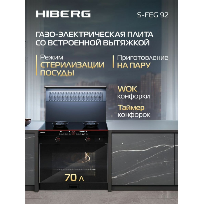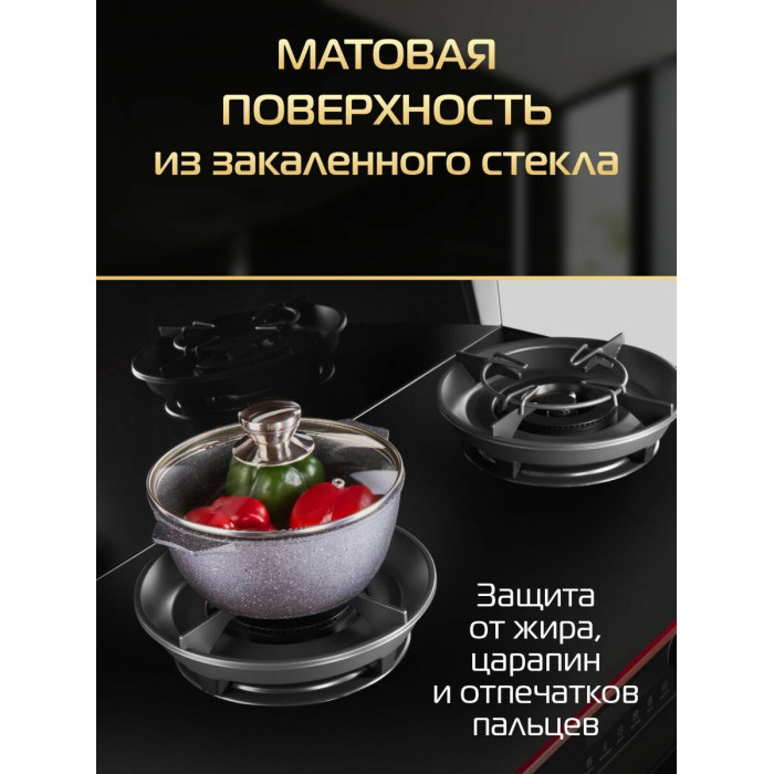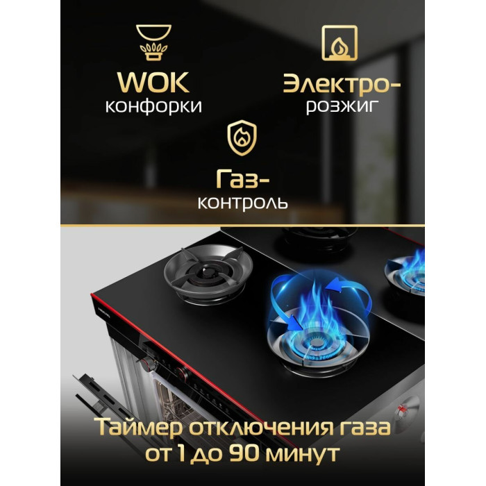 Корпус и верхний вентиляционный блок плиты с сеткой, Инструкция с гарантийным талоном, Кабель питания, 2 кронштейна, 2 винта М8*30, Газовые конфорки комплект, решетки из нерж. стали 2 шт., обратный клапан воздуховода, металлический хомут, 4 штуки винтов St5*45, дюбель 10 4 шт, 2 прокладки уплотнительные для газа, корзина для посуды, перчатка, противень 2 шт., хромированная решетка и шар-абсорбент.