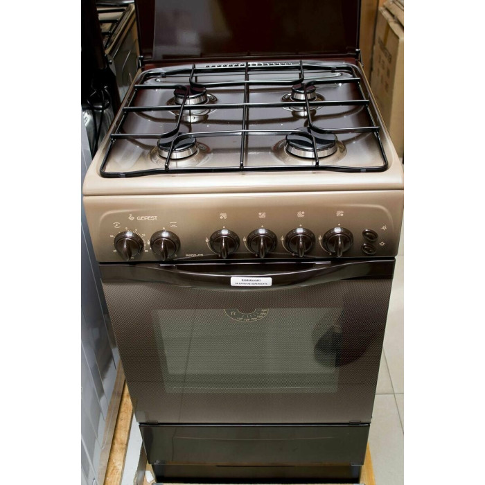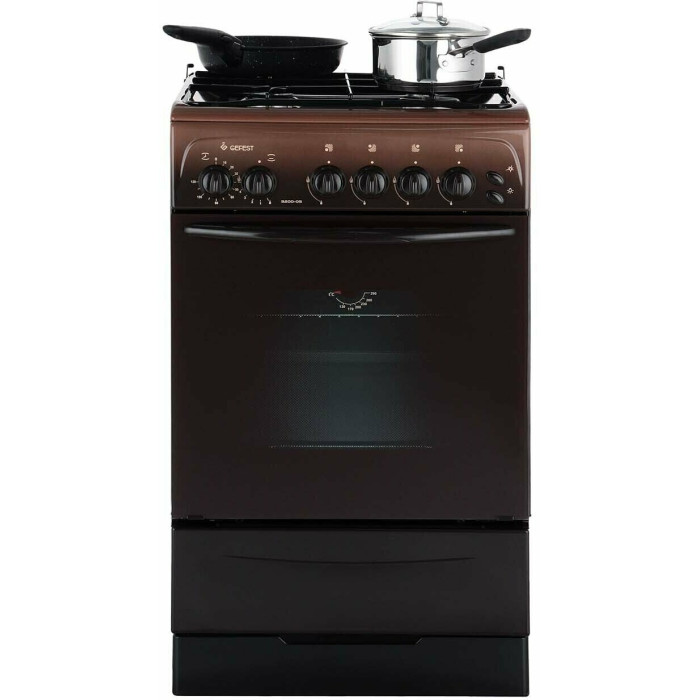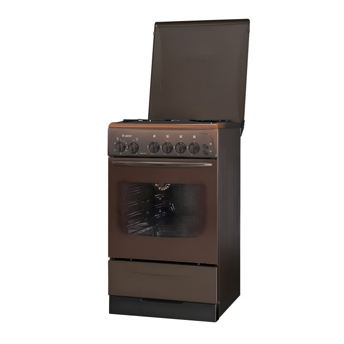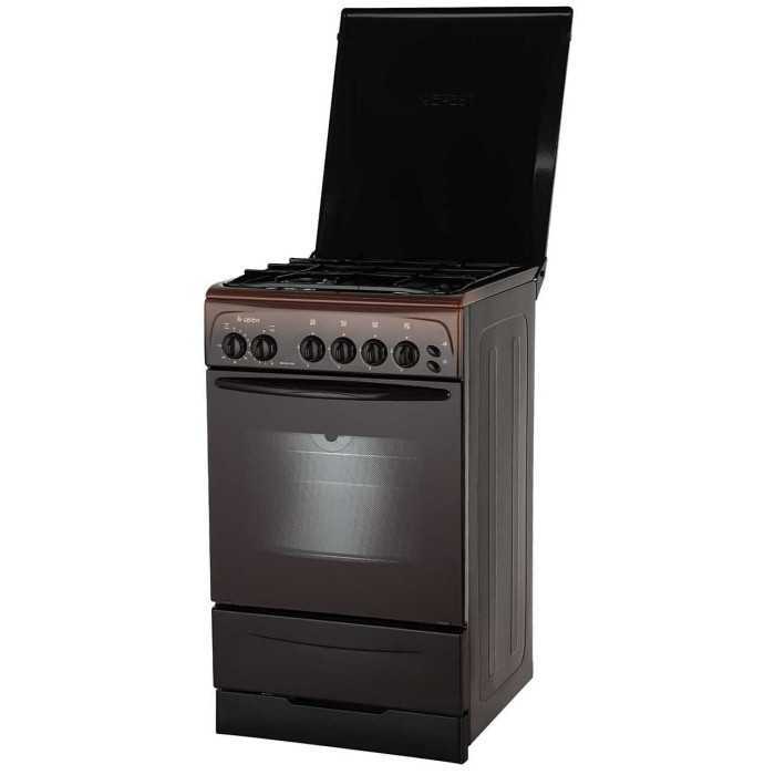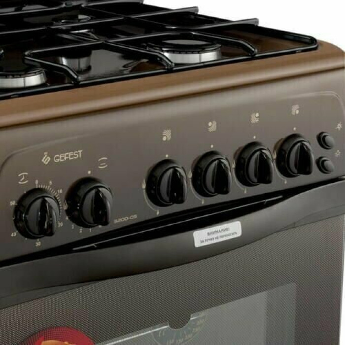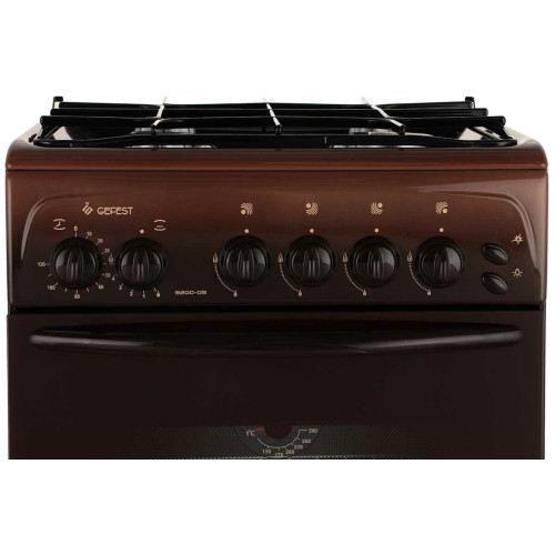 Плита газ. GEFEST 3200-05 К19 коричневый, 50х57 см, 4газ, крышка металл, эмаль, электророзжиг, газовая духовка, откидная дверца, таймер, подсветка