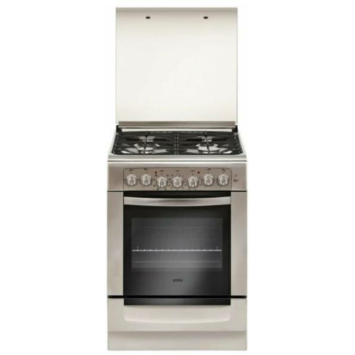 Плита комбинированная SMILE SM6GE140 нерж/серый (г/к, стекл. кр, чугун, подсв, розжиг, таймер). Тип духовки электро