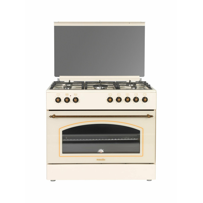 Плита комбинированная SMILE SM9GER310 бежевый (5-конф, г/к, ретро, стекл. кр, чугун, подсв, розжиг, таймер, конвекция). Газовая плита Smile SM9GER310 бежевая предлагает сочетание пяти газовых конфорок и вместительного духового шкафа. Газовые конфорки защищены чугунными решетками. Объем электрической духовки 110 литров с двумя противнями большого размера и решеткой для запекания продуктов сделает процесс запекания продуктов удобным и быстрым. Все конфорки управляются поворотными переключателями, которые оснащены системой авторозжига и газ-контроля. Духовой шкаф работает от электричества и оснащен турбовентилятором (конвекцией), подсветкой, термостатом и термоуказателем на дверце духовки. Дизайн газовой плиты с электрической духовкой Smile SM9GER310 выполнен в ретро-стиле (изящные переключатели, ручки, цветовое решение газовой плиты). Стеклянная крышка убережет вашу стену от брызг во время готовки. Данная модель подойдет для большой семьи, которая выбирает надежность, долговечность и изысканный стиль.
