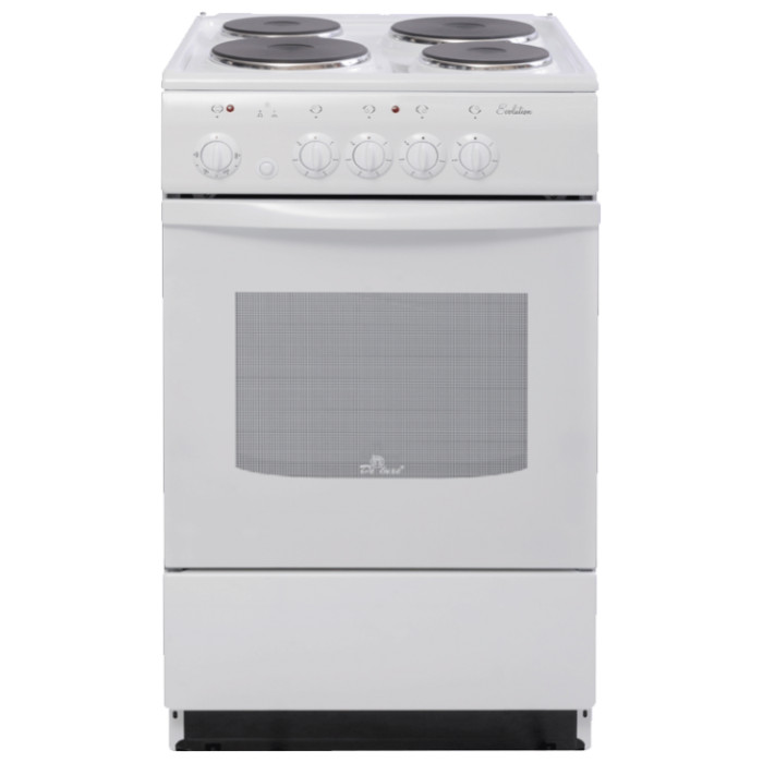 Плита электрическая DE LUXE 5004.12э кр белая ШхГхВ 50x50x85,конфорка на 2кВт,таймер,духовка с терморегулятором, грилем, вертелом с эл./приводом, подсветкой.белая