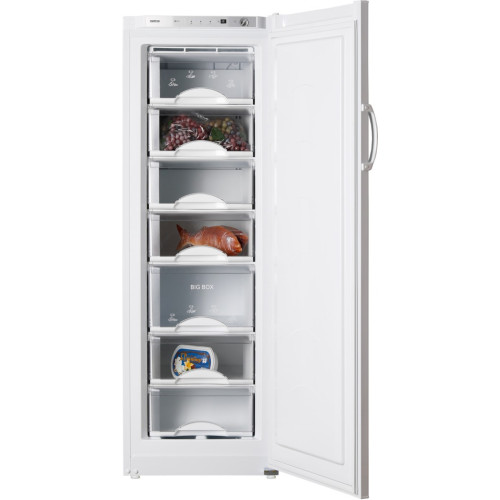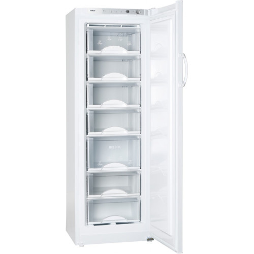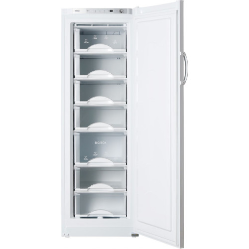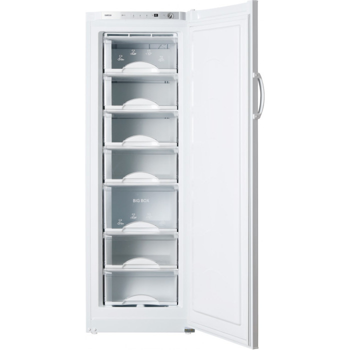 Морозильная камера. Общий объем: 243 л Класс энергопотребления: А +, Количество компрессоров: 1. 7 отделений в морозильной камере. Годовое потребление энергии: 265 кВтч Цвет: белый . Перенавеска двери : Хладогент R 600a