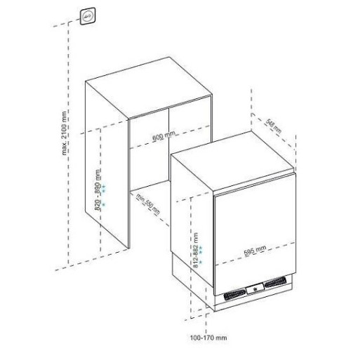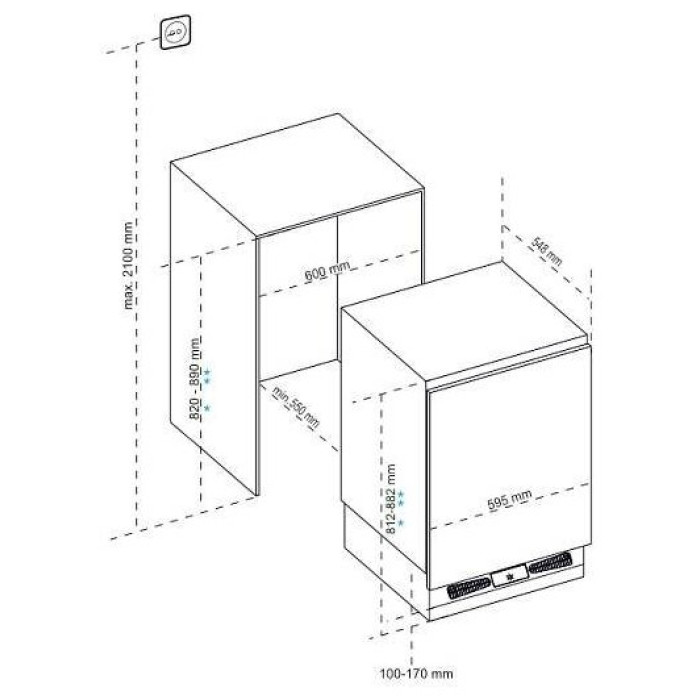 Встраиваемый морозильник, Класс энергопотребления: A+, Тип управления: механическое, Количество компрессоров: 1, Перенавешиваемая дверь, жесткое крепление, Объем нетто, л: 93, Габаритные размеры (в/ш/г), мм: 818/595/548