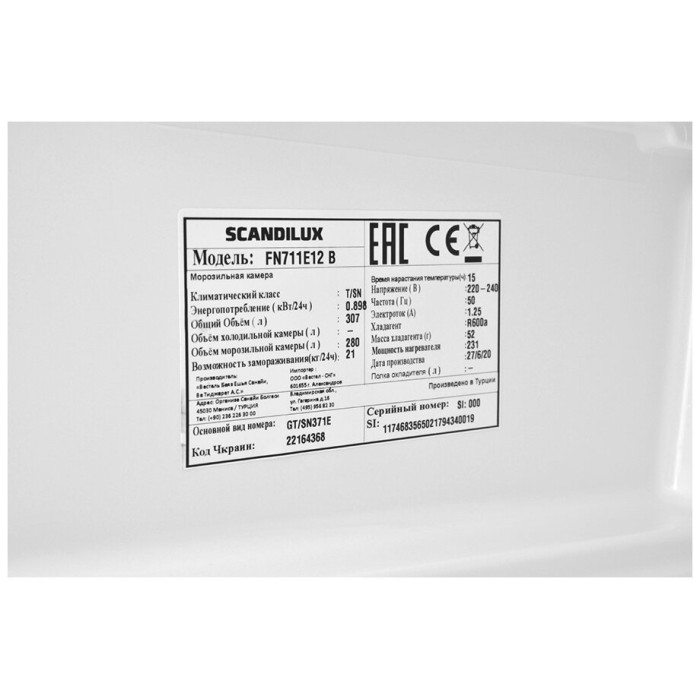 Тип морозильника: морозильник-шкаф; Размораживание: No Frost; Тип компрессора: стандартный; Тип управления: электронный; Мощность замораживания: 21 кг/сут; Автономное сохранение холода: 15 ч; Режимы: суперзаморозка; Общий объем: 307 л;