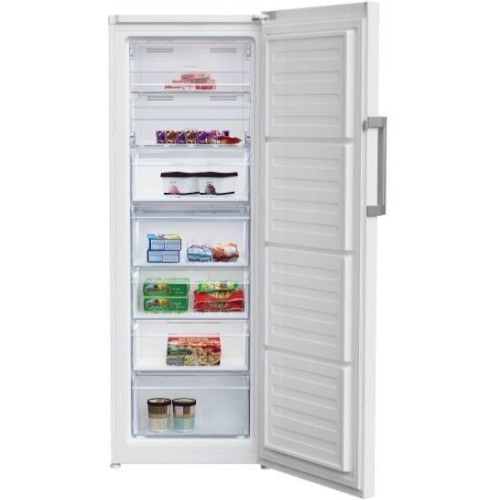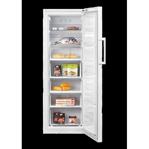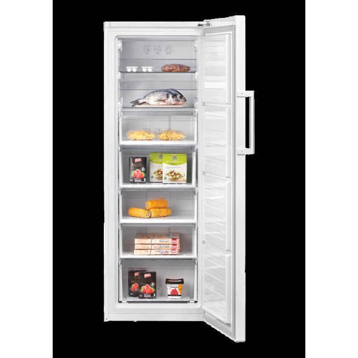 Морозильная камера общим объемом 266 л оснащена большими ящиками для хранения продуктов и статической системой охлаждения. Дверь морозильной камеры может быть установлена с открытием в любую сторону и имеет антибактериальный уплотнитель, который снижает рост и распространение бактерий и микробов.