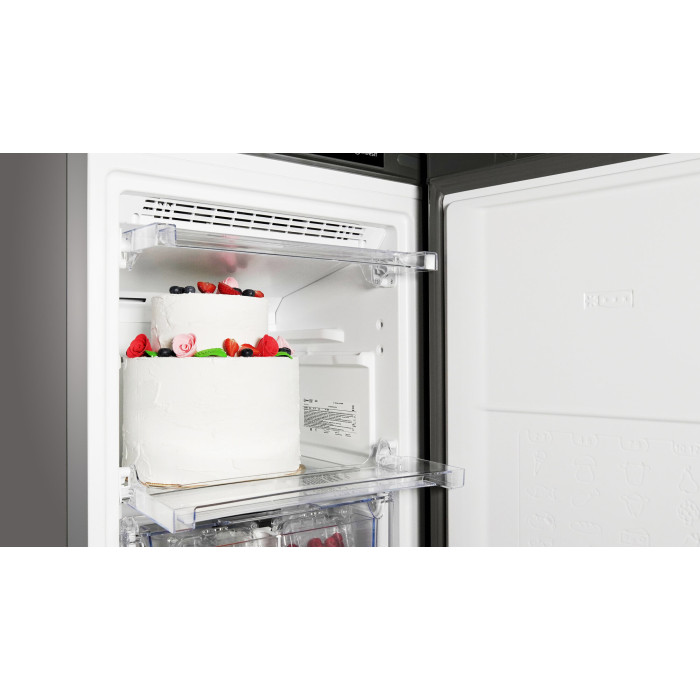 Серия – Athena. Потребляемая мощность - 90 Вт. Хранение при отключении питания - 15 ч. Сигнал открытой двери – отсутствует. Перенавешиваемые двери – Да. Материал двери – металл. Тип ручки – внешняя. Отделений в морозильной камере – 7. Материал ящиков – пластик. Цвет ящиков – прозрачный. Открытие дверцы – направо. Сенсорная панель управления – Да. Тип компрессора – стандартный. Ящик Pick&Go. Extra Space. Volt Stability