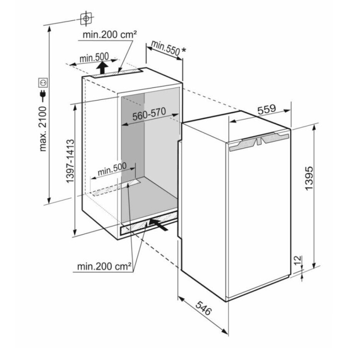 морозильник встраиваемый, 153 л, класс энергопотребления A++, No Frost, 55,9х54,6х139,5 см