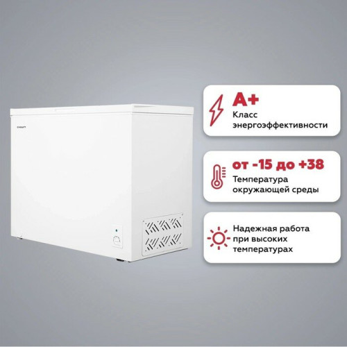 Тип морозильника: морозильник-ларь; Размораживание: ручное; Тип компрессора: стандартный; Тип управления: электронное; Мощность замораживания: 11.5 кг/сут; Режимы: суперзаморозка; Общий объем: 280 л; Количество камер: 1;