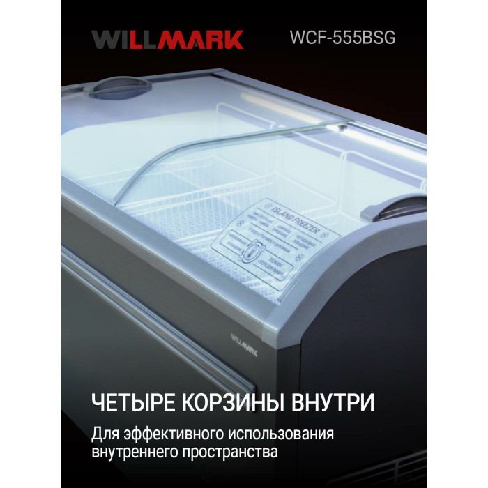 Морозильный ларь-бонета; колесики; 4 корзины; ключи для открытия замка; инструкция
