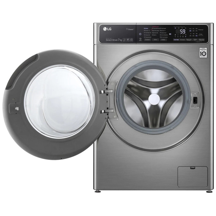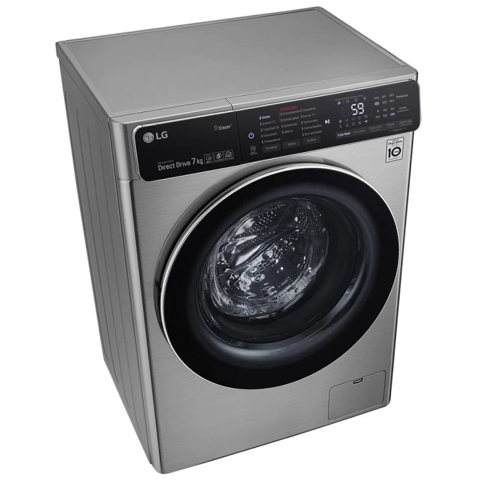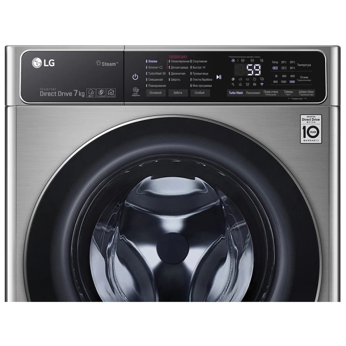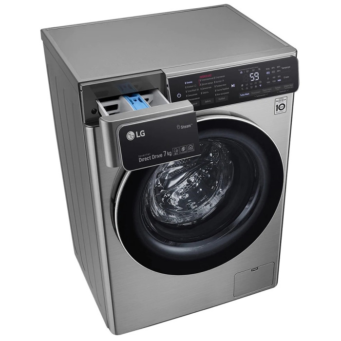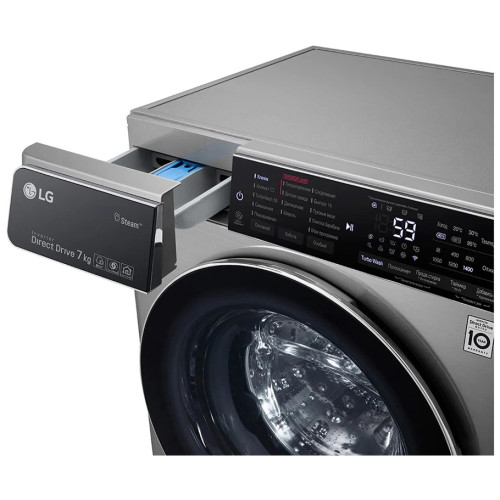 энергопотребление 1.06 кВт/ч; функция пара Steam; Wi-Fi; возможность управления через приложение LG ThinQ; автоперезапуск, индикатор рабочего цикла, индикатор времени до конца цикла, индикатор блокировки дверцы, индикатор ошибок/самодиагностика, индикатор пуск/пауза, индикатор загрузки, индикатор температуры, индикатор скорости отжима