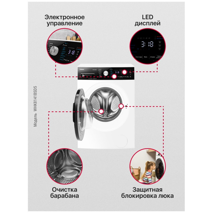 быстрая стирка, дополнительное полоскание, ежедневная стирка, интенсивная стирка, ночной режим, отмена отжима, предварительная стирка, ручная стирка, стирка деликатных тканей, стирка детских вещей, стирка синтетики, стирка спортивной одежды, стирка хлопка, стирка черных вещей, стирка шерсти, экономичная программа
