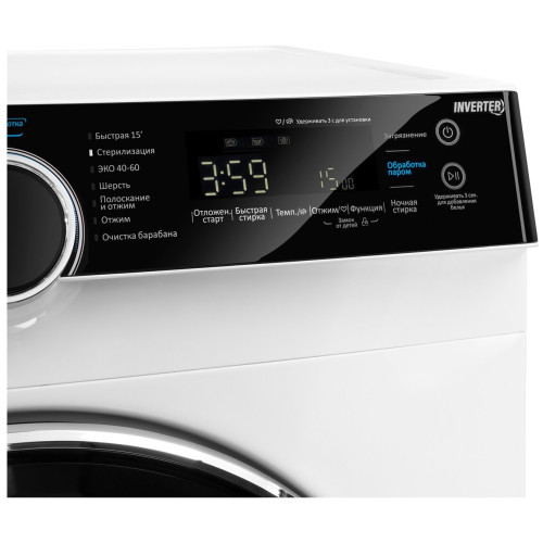 выбор скорости отжима, выбор температуры стирки, контроль за уровнем пены, отложенный старт