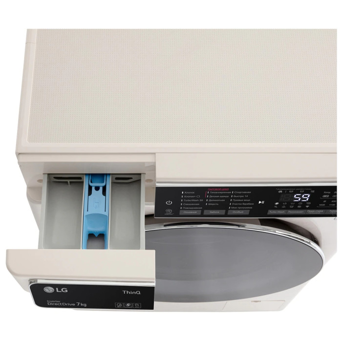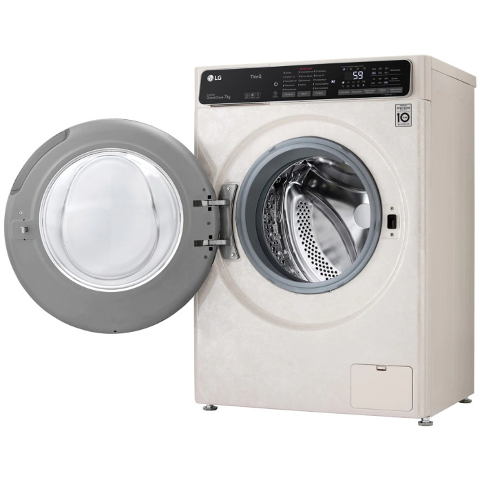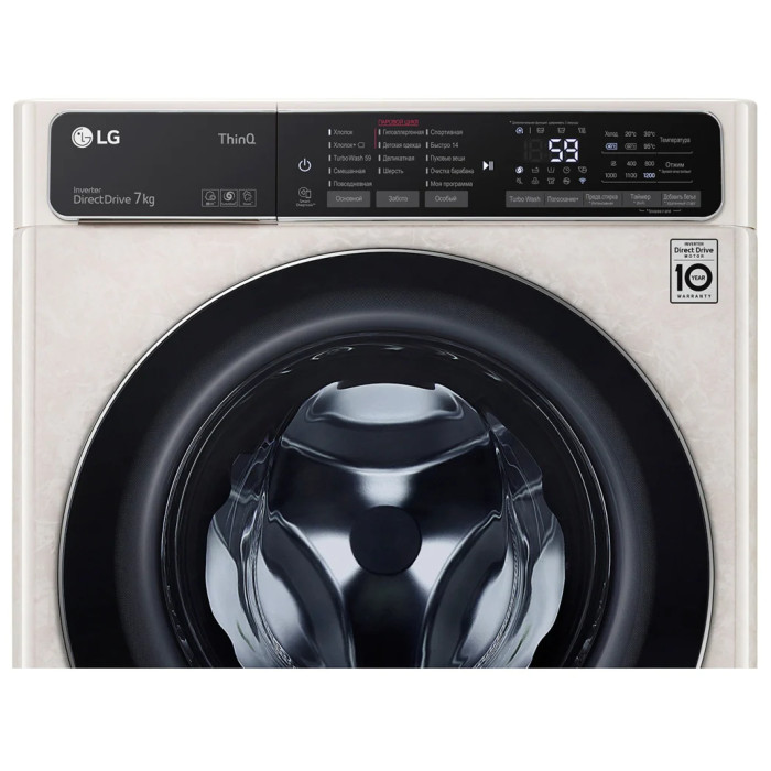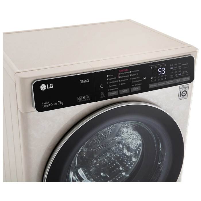 энергопотребление 1.06 кВт/ч; функция пара Steam; Wi-Fi; возможность управления через приложение LG ThinQ; автоперезапуск, индикатор рабочего цикла, индикатор времени до конца цикла, индикатор блокировки дверцы, индикатор ошибок/самодиагностика, индикатор пуск/пауза, индикатор загрузки, индикатор температуры, индикатор скорости отжима