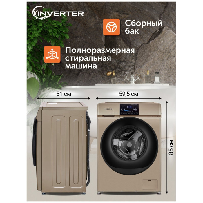 тип загрузки: фронтальная, максимальная загрузка белья: от 7 кг, установка: отдельно стоящая, глубина: 51 см, ширина: 59.50 см, высота: 85 см, максимальное значение скорости отжима: 1100–1200 об/мин, класс энергопотребления: A+++, инверторный двигатель, защита: от детей, от протечек, программы: быстрая стирка, замачивание, отжим, полоскание, предварительная стирка, предотвращение сминания, ручная стирка, стирка детских вещей, стирка пуховых вещей, стирка синтетики, стирка смешанных тканей, стирка спортивной одежды, стирка хлопка, стирка шелка, стирка шерсти, экономичная программа, быстрая стирка 15 минут и 42 минуты, режим стирки Рубашки, функция дозагрузки белья: через основной люк, дополнительные функции: автовзвешивание, выбор скорости отжима, выбор температуры стирки, контроль баланса, контроль за уровнем пены, отложенный старт, сигнал окончания стирки