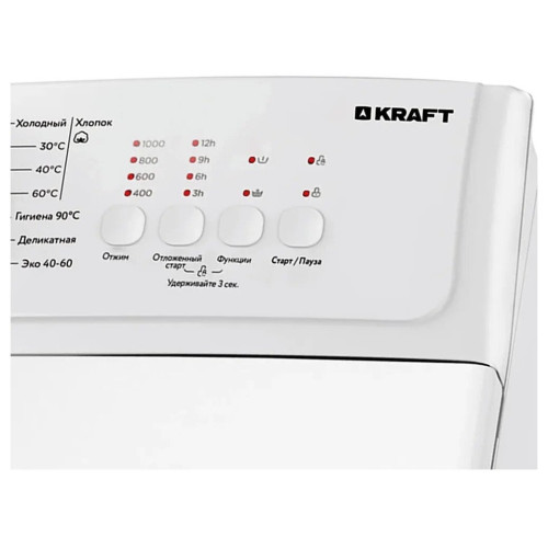 Вертикальная автоматическая стиральная машинка KRAFT KF-UME6201W обладает электронно-механической панелью управления с поворотной ручкой выбора настроек, кнопками и индикацией работы. Оптимальный набор из 15 программ стирки с возможностью регулировки температуры воды и скорости отжима позволяет учитывать особенности ухода за различными видами тканей. Вместительный барабан рассчитан на большую загрузку до 6 кг белья. Функция отсрочки старта служит для запуска рабочего цикла в нужное время без вашего участия.