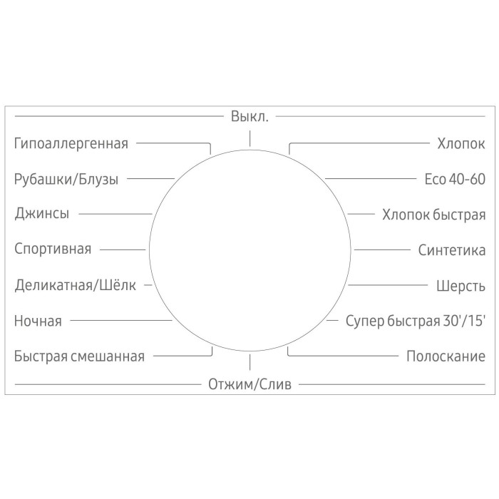 быстрая стирка, гипоаллергенная стирка, дополнительное полоскание, ежедневная стирка, ночной режим, полоскание, предварительная стирка, стирка деликатных тканей, стирка джинсов, стирка синтетики, стирка смешанных тканей, стирка спортивной одежды, стирка хлопка, стирка шелка, стирка шерсти, экономичная программа