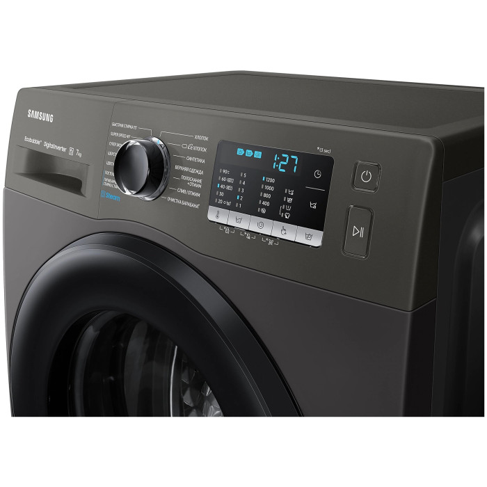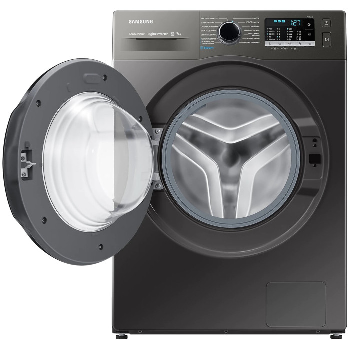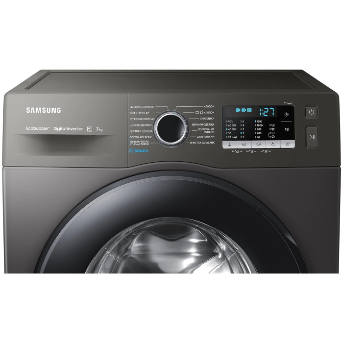 тип загрузки: фронтальная, максимальная загрузка белья: 7–7,9 кг, установка: отдельно стоящая, глубина: 45 см, ширина: 59.50 см, высота: 85 см, максимальное значение скорости отжима: от 1200 об/мин, класс энергопотребления: A++, защита: от детей, от протечек, от скачков питания, подача пара, дополнительные функции: контроль баланса, отложенный старт