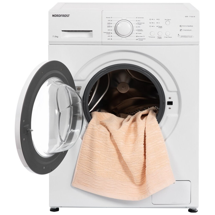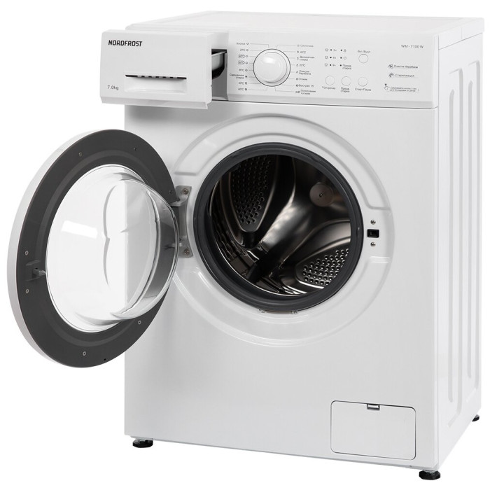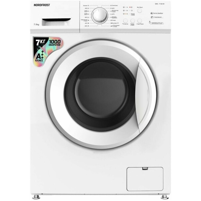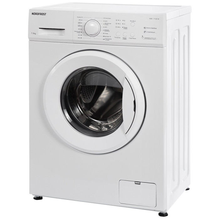 Стиральная машина NORDFROST WM 7100 W с объемом бака 46 л и загрузкой белья до 7 кг – функциональная, компактная, надежная и понятная в использовании модель, а ее современный и стильный дизайн идеально впишется в интерьер вашей ванной или кухни!