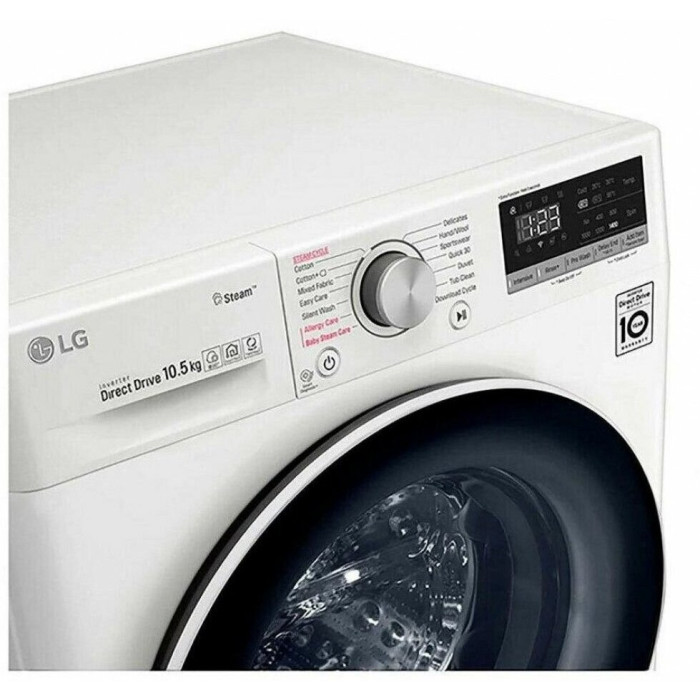 тип загрузки: фронтальная, максимальная загрузка белья: 10–10,9 кг, установка: отдельно стоящая, класс энергопотребления: B, инверторный двигатель, защита: Защита от детей, Защита от протечек, программы: предварительная стирка, стирка деликатных тканей, стирка детских вещей, стирка хлопка, дополнительные функции: отложенный старт, Звуковой сигнал, особенности конструкции: Рельефная поверхность барабана