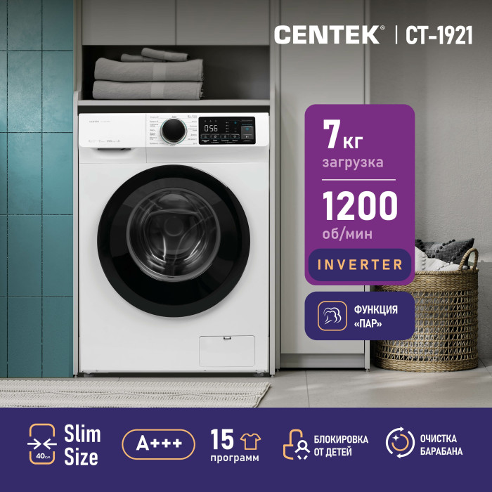 Вы уже не можете дольше терпеть медленную и неакуратную стирку? Представляем стильную, быструю и надежную стиральную машину CENTEK CT-1921, которая позволяет вам экономить свое время, которое вы можете потратить на свое любимое дело, не заботясь о стирке белья. С ее мощностью 2000 Вт и максимальной скоростью отжима 1200 об/мин, вы можете быть уверены в результате стирки!