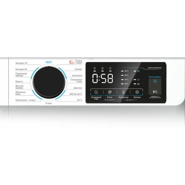 выбор скорости отжима, отложенный старт, очистка барабана