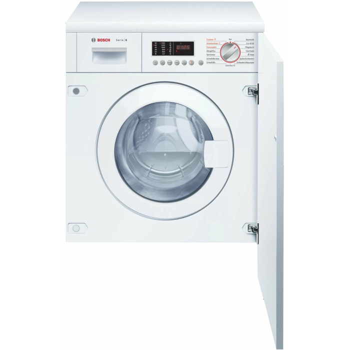 Встраиваемая стиральная машина Bosch Wkd28542Eu с 15 программами стирки и возможностью отсрочки старта до 24 часов станет идеальной помощницей в вашем доме! Нейтральный белый цвет стиральной машинки впишется практически в любой интерьер. Также в данной модели предусмотрен режим сушки, что высоко оценят пользователи. А на большом дисплее Bosch Wkd28542Euбудет отображаться вся необходимая информация, что сделает процесс стирки наиболее комфортным и простым. Отдельно стоит отметить ночной режим стирки и функция Quick 15, которая с легкостью позволяет постирать за 15 минут 2 кг белья. Для большей безопасности в данной модели установлена полная защита от протечек и функция блокировки, что очень удобно, особенно, если у вас в доме есть маленькие дети. Об окончании стирки стиральная машинка оповестит вас сигналом. Информация с сайта производителя. Характеристики: Загрузка белья: 7 кг сух/б