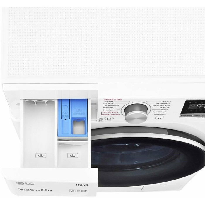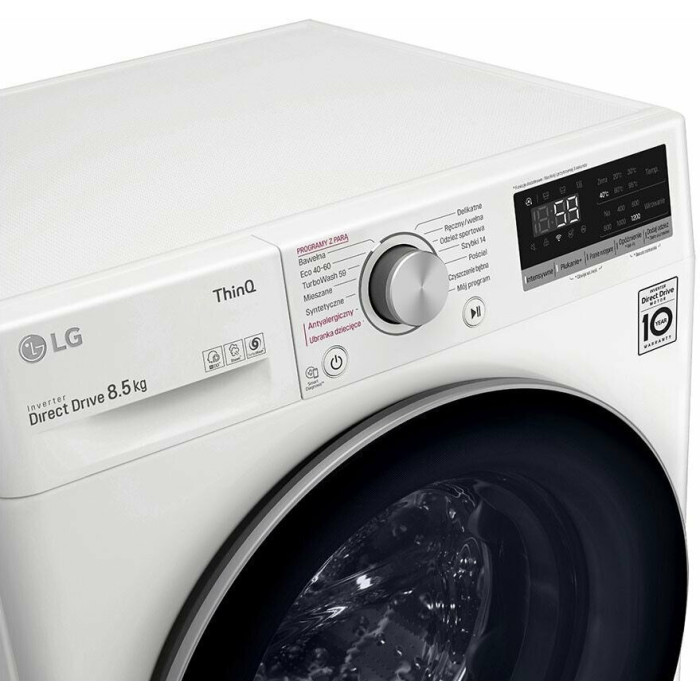 Тип загрузки: фронтальная; Максимальная загрузка белья: 8.5 кг; Инверторный двигатель: да; Максимальная скорость отжима: 1200 об/мин; Тип управления: электронное; Цвет: белый; Сушка: нет; Количество программ стирки: 14;