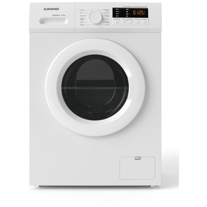 Стиральная машина SunWind SWME603 белый корпус, фронтальная загрузка до 6кг, максимальная скорость отжима 1000об/мин