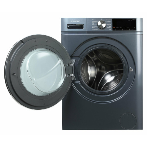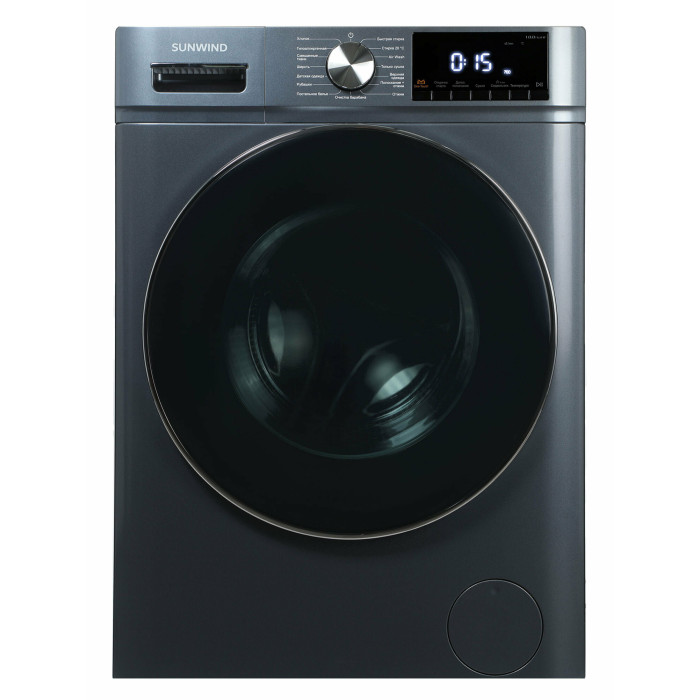 Стиральная машина SunWind SWFD9403 темно-серый корпус, черный люк, фронтальная загрузка до 10кг, максимальная скорость отжима 1400об/мин, класс энергопотребления B, язык панели управления русский