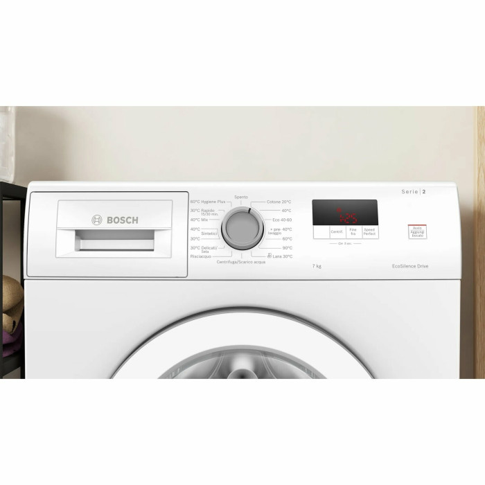 Тип загрузки: фронтальная; Максимальная загрузка белья: 7 кг; Инверторный двигатель: да; Максимальная скорость отжима: 1000 об/мин; Тип управления: электронное; Цвет: белый; Сушка: нет; Программы: Полоскание, Слив, Отжим, Быстрая стирка, Стирка изделий из хлопка, Стирка изделий из синтетики, Стирка деликатных тканей, Стирка изделий из шерсти;