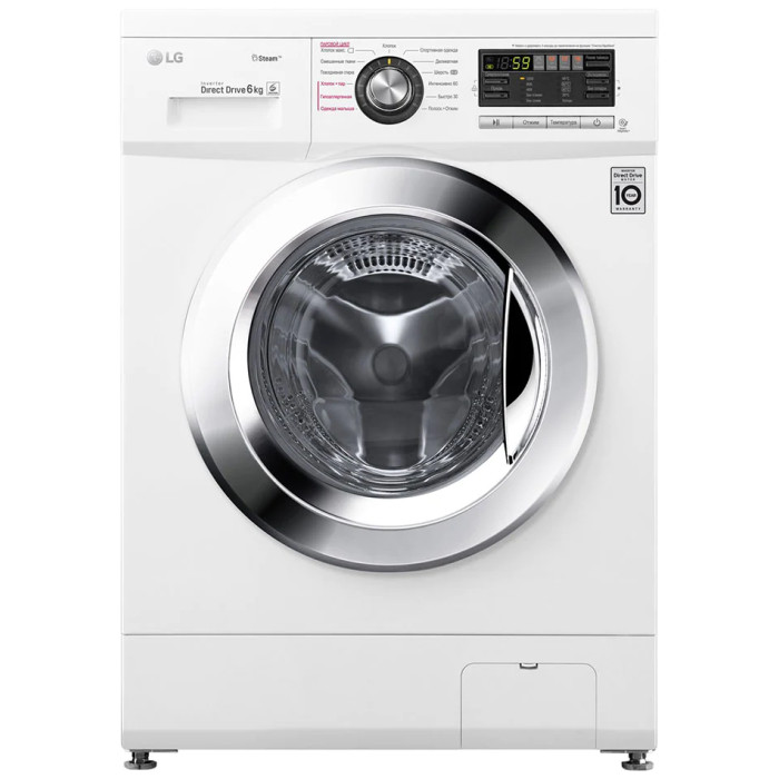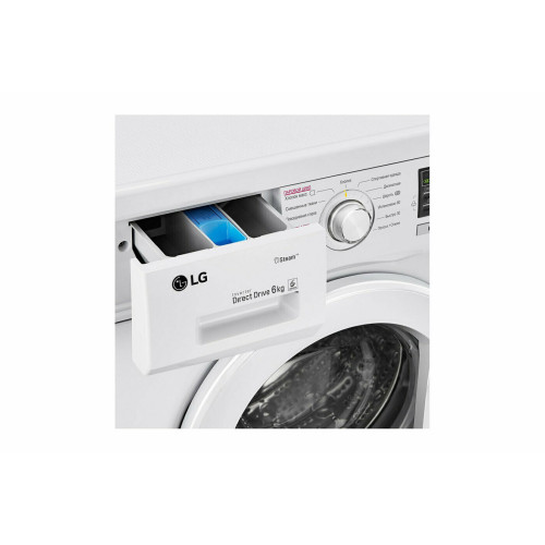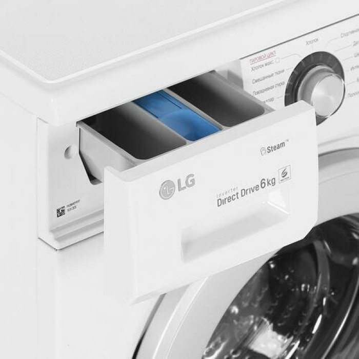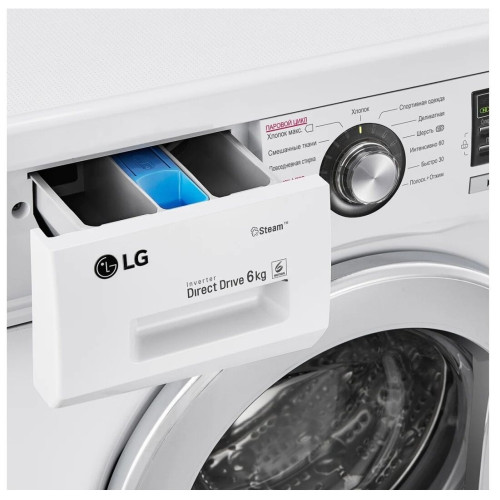 Максимальный объем загрузки 6 кг, скорость отжима 1200 об/мин, электронное управление, инверторный двигатель, функция пара