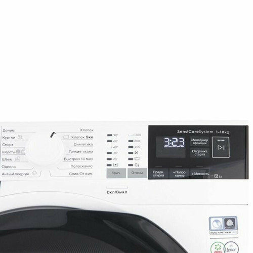 Тип загрузки: фронтальная; Максимальная загрузка белья: 10 кг; Инверторный двигатель: нет; Максимальная скорость отжима: 1200 об/мин; Тип управления: электронное (интеллектуальное); Цвет: белый; Сушка: нет; Количество программ стирки: 14;