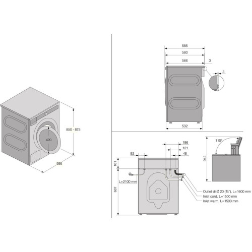 Габариты (В/Ш/Г) (см): 85/59.5/58.5 Загрузка белья (кг): 8