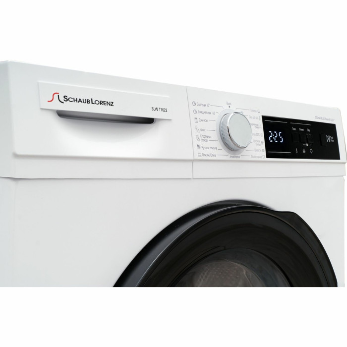 Модель относится к узким стиральным машинам, ее глубина 41,6 см, она отлично впишется в помещения различной площади. К основным преимуществам также относятся: Инверторный мотор BLDC — Brushless DC electric motor (бесколлекторный электродвигатель постоянного тока). Особая технология данного двигателя гарантирует высокую надежность и долговечность, экономию электроэнергии и потребления воды. Стиральная машина работает тихо благодаря минимальному уровню вибраций при стирке и отжиме. Благодаря паровой системе Steam Assist глажка стала быстрой и легкой. Пар, проникая в ткани, размягчает волокна, устраняет складки и делает одежду мягкой и нежной. 15 программ стирки, среди которых Хлопок на различных температурах, Эко 20°, Синтетика, Шерсть, Повседневная 60°, Деликатная стирка, Режим Allergy Care (Детский режим с дополнительным циклом полоскания), Быстрая стирка 15 мин. и другие. Система Eco-Logic(экономная половинная загрузка). Индикатор отключения воды. Защита от протечек воды. Защита от переполнения барабана. Контроль дисбаланса. Контроль за уровнем пены. Защита от детей. Регулировка температуры стирки, скорости отжима. LED-дисплей, Электронное управление. Индикатор оставшегося времени. Звуковой сигнал окончания цикла. Удобный загрузочный люк диаметром 47 см. Съемная верхняя крышка, регулируемые ножки.