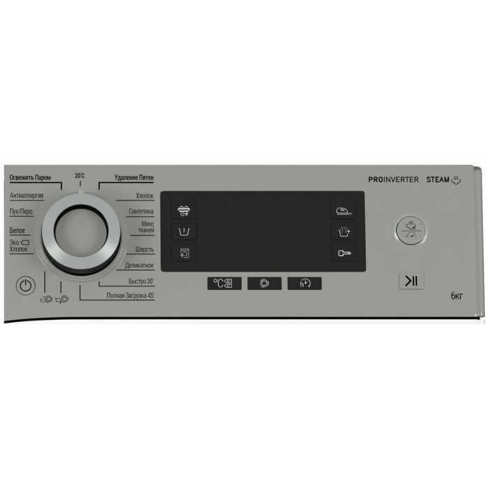 Тип загрузки: фронтальная; Максимальная загрузка белья: 7 кг; Инверторный двигатель: есть; Максимальная скорость отжима: 1200 об/мин; Тип управления: кнопочное, поворотный механизм; Цвет: белый; Сушка: нет; Количество программ стирки: 16;