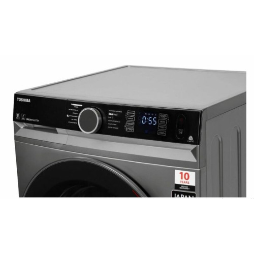 Стиральная машина Toshiba TW-BL90A4UZ (SS) с фронтальной загрузкой способна очищать сразу до 8 кг белья. Интенсивность оборотов при отжиме и стирке составило 1200 в минуту. Инверторный мотор обеспечивает бесшумную стирку и характеризуется длительным сроком эксплуатации.