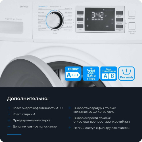 Стиральная машина ZUGEL ZWF9141I Inverter - это полнофункциональное устройство, которое обеспечивает высокое качество стирки и удобство использования.
