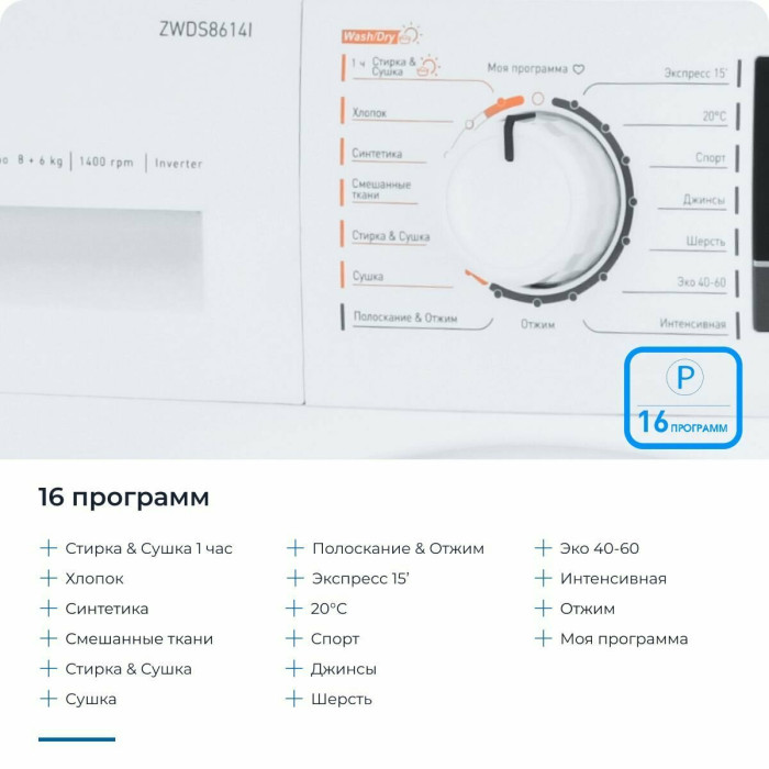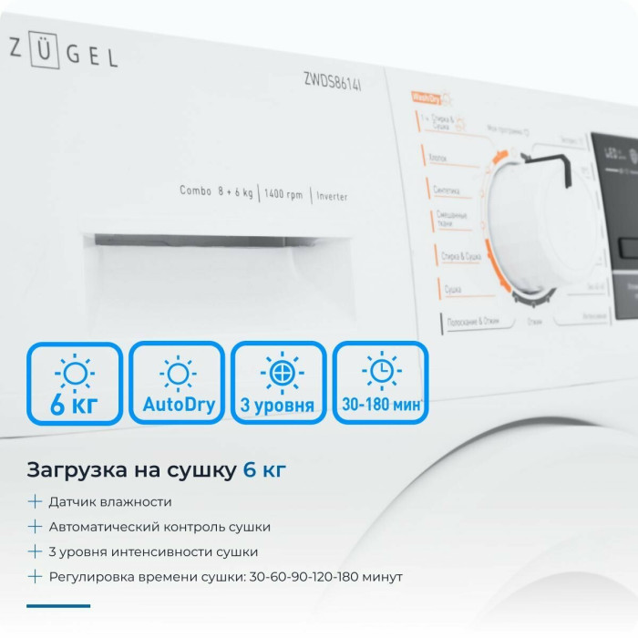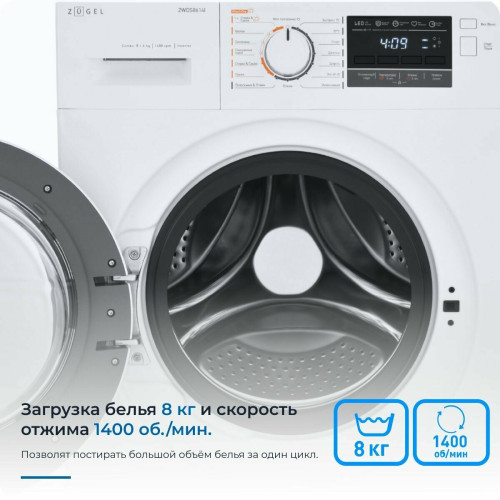 Стирально-сушильная машина ZUGEL ZWDS8614I Inverter представляет собой современное и функциональное устройство, которое станет незаменимым помощником в быту.