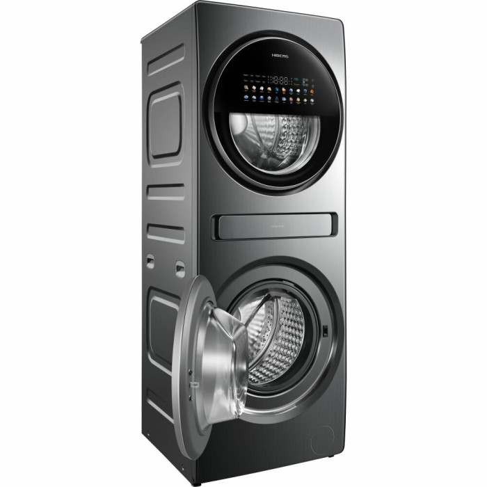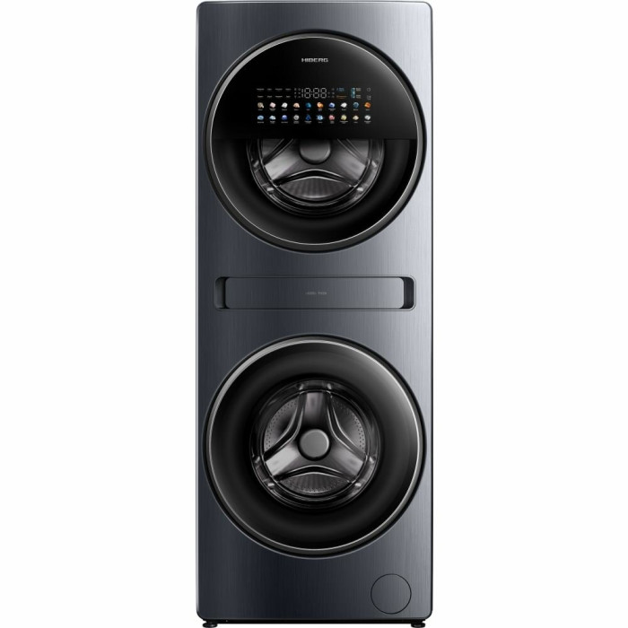 Стиральная машина с сушкой HIBERG TOWER i-DD 107-612 Sd - это уникальное устройство с двумя барабанами, которое позволит оптимально использовать пространство в ванной или прачечной. Вместимость верхнего барабана составляет 6 кг, нижнего - 10 кг для стирки и 7 кг для сушки.