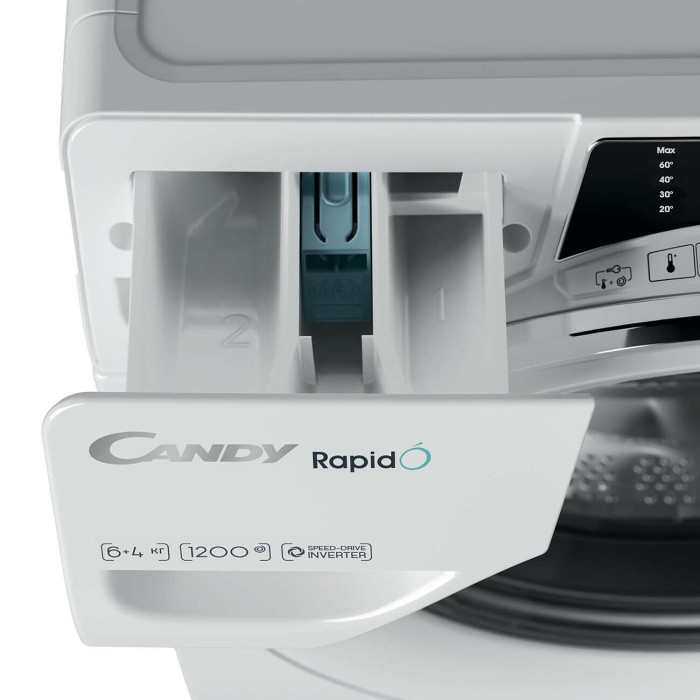 Стиральная машина с сушкой Candy ROW42646DWMC-07 – идеальный вариант для тех, кому по-настоящему дорого своё свободное время. Максимальная загрузка достигает 6 кг, поэтому модель будет удачным решением для семьи из трёх-четырёх человек.