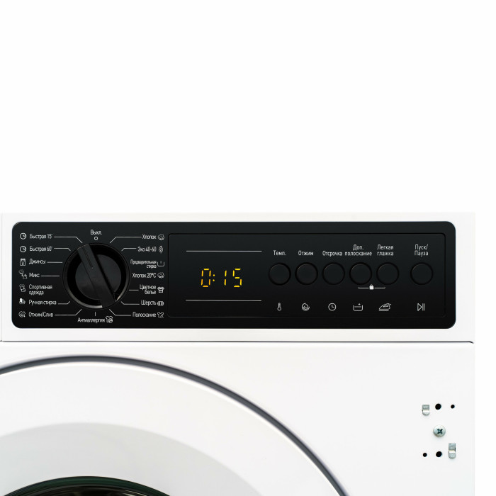 1200 об/мин, загрузка 7 кг, легкое глаженье, отсрочка старта, выбор скорости отжима и температуры стирки