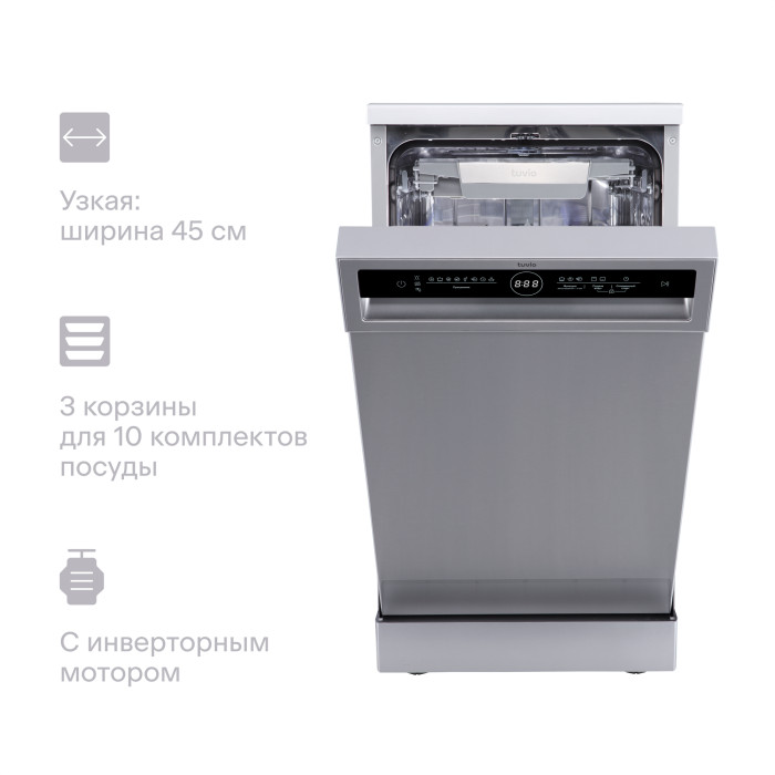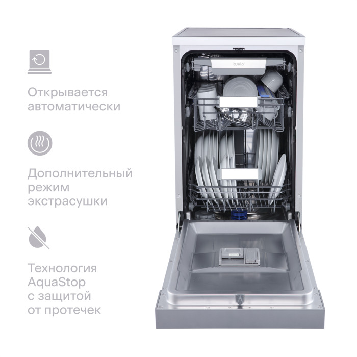 режим короткой мойки; антибактериальный фильтр, силиконовые подставки для кружек