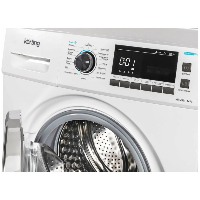 Дисплей отлично дополнит функционал стиральной машины и поможет увидеть всю необходимую информацию, такую как температуру стирки, количество установленных оборотов, а главное вы всегда сможете посмотреть, сколько осталось времени до завершения стирки, что позволит спланировать свои дела.