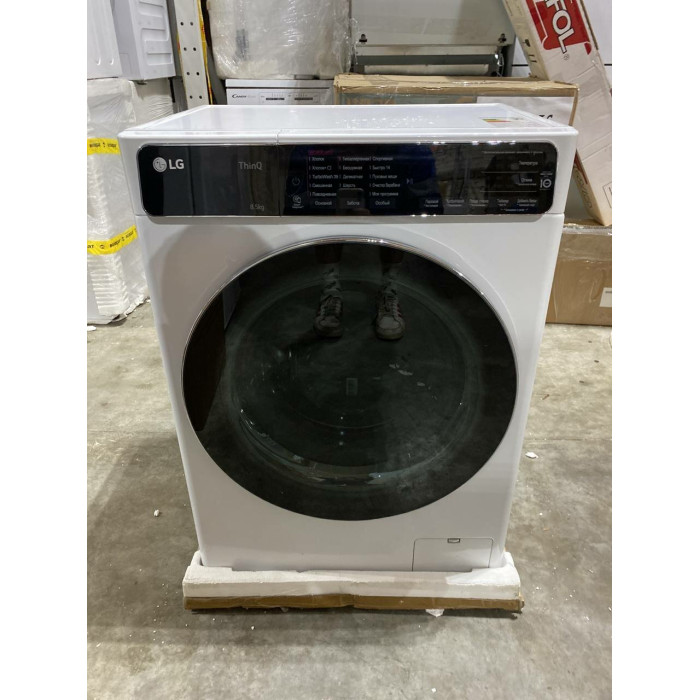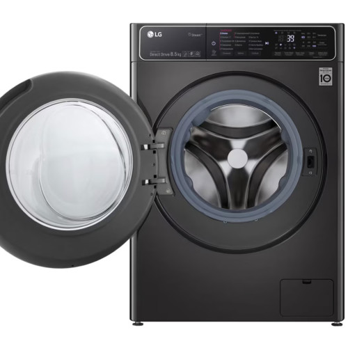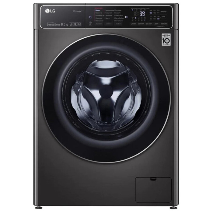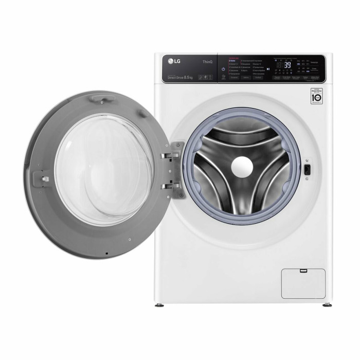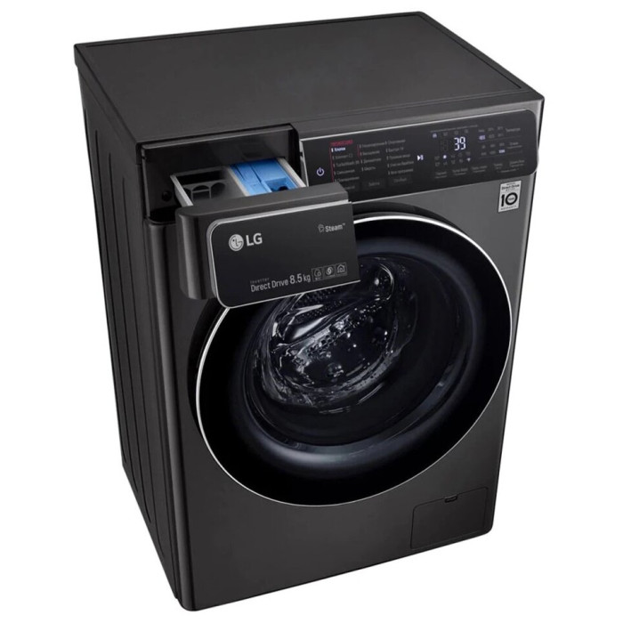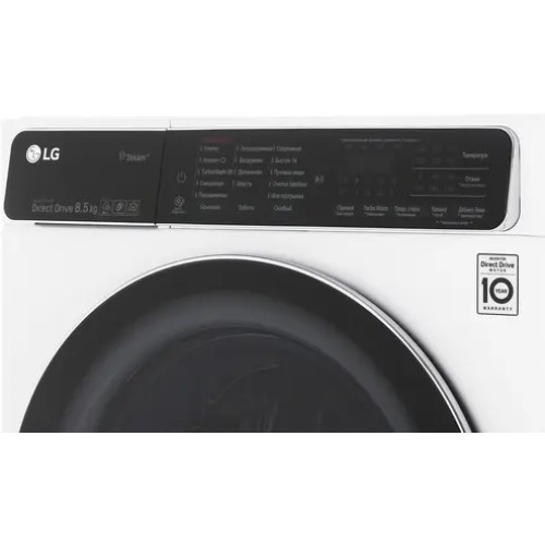 энергопотребление 1.25 кВт/ч; функция пара Steam+; Wi-Fi; возможность управления через приложение LG ThinQ; автоперезапуск, индикатор времени до конца цикла, индикатор блокировки дверцы, индикатор ошибок/самодиагностика, индикатор пуск/пауза, индикатор загрузки, индикатор температуры, индикатор скорости отжима