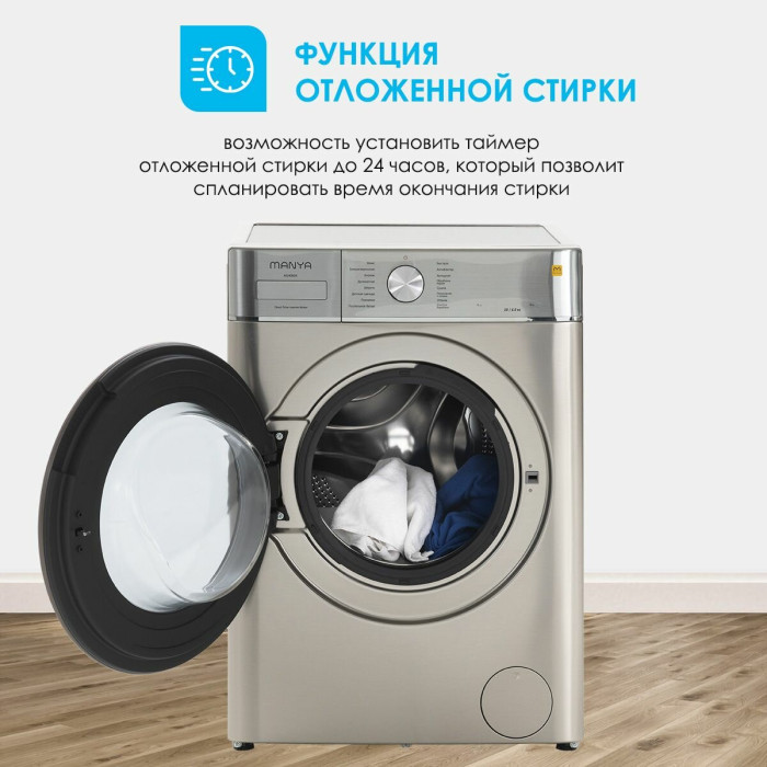 интеллектуальное управление стиркой, контроль баланса, контроль за уровнем пены, отложенный старт, очистка барабана, сигнал окончания стирки